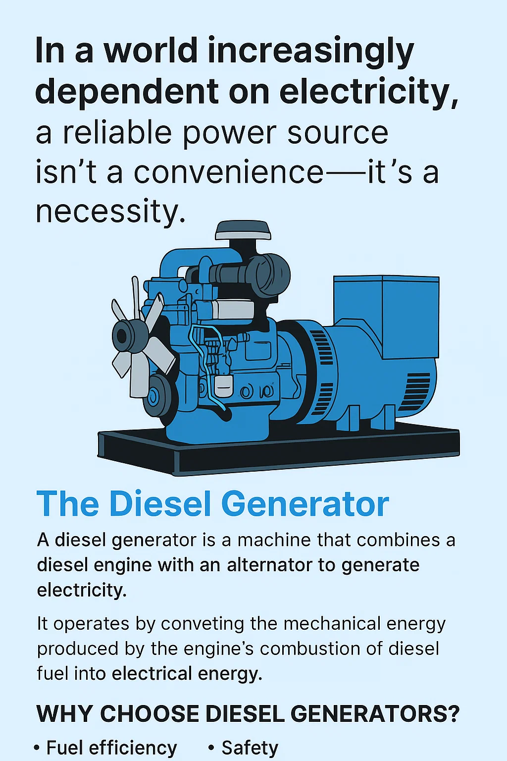 Bezproblemowa praca tych elementów pozwala m.in generator diesla aby zapewnić stabilne i niezawodne źródło energii, przekształcając energię chemiczną w olej napędowy fuel w energię elektryczną, która zasila domy, firmy i niezbędną infrastrukturę.